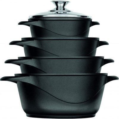 SMILE Menaje | COCINA Mgk-17 Batería De Cocina Inducción 8 Piezas, Aluminio Fundido, 4 Ollas, Tapas Vidrio Templado, Libre Pfoa, , Negro
