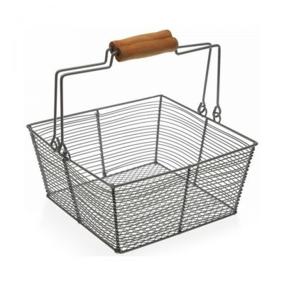 VERSA Utensilios de cocina | COCINA Frutero Cuadrado Gris 22,5 X 10 Cm Metal Madera Acero