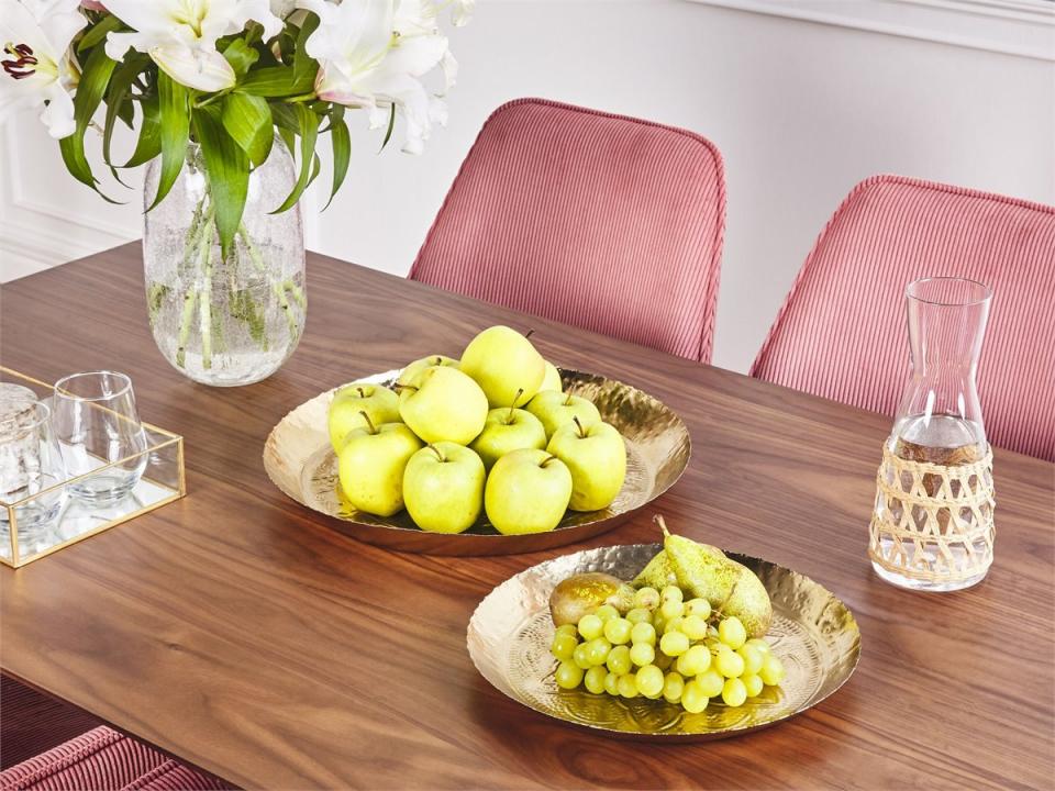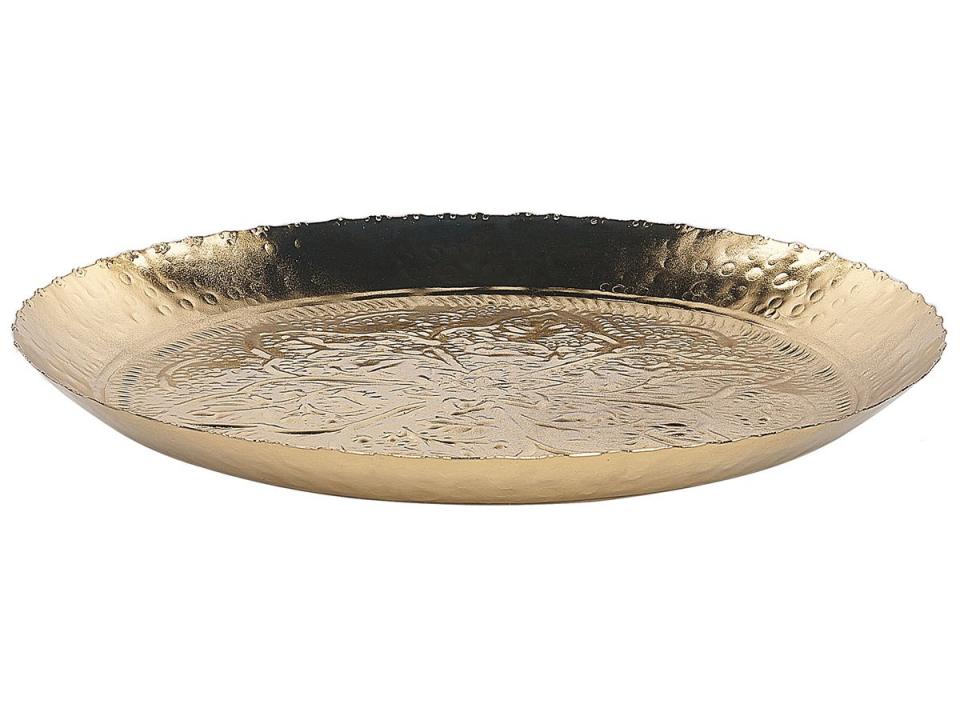 Juego de accesorios decorativos. Añade un toque de glamour a tu dormitorio o recibidor con este conjunto de 2 bandejas decorativas. Está fabricado a partir de metal resistente y duradero. La textura martillada aporta un aire retro al diseño. Ideal para colocar velas decorativas o para guardar accesorios o joyas. Detalles: Tipo de Producto: Plato decorativo Estilo: Moderno Color: Dorado Tipo de material: Metal Material principal: Hierro Acabado: Brillante Elaborado a mano: Sí Dimensiones: Profundidad: 32/40 cm Ancho: 32/40 cm Altura: 3/4 cm Peso: 1.2 kg La oferta incluye: 2 x Bandeja Ventajas: Decorativo y funcional, Apariencia elegante, Materiales de la más alta calidad, Acabado preciso, Mantenimiento sencillo Información de montaje: No requiere montaje Información adicional: Cada pieza de este modelo está hecha a mano, por lo tanto el tono y el patrón pueden variar ligeramente del modelo presentado en la imagen. Consejos de mantenimiento: Metal: 1.Para elementos de cobre o cromados, use agente abrillantador 2.Para evitar arañazos, no use limpiadores abrasivos 3.Limpie con un limpiador y un paño suave, seque después.