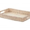Juego de accesorios decorativos. Añade un toque de elegancia a tu mesa con este conjunto de 2 bandejas decorativas. Está fabricado a partir de ratán de alta calidad con incrustaciones de nácar. Puede ser utilizado como bandeja para servir, joyero o recipiente para llaves o accesorios. Detalles: Tipo de Producto: Bandeja Estilo: Glamour Color: Natural Tonalidad: Gris claro Tipo de material: Mimbre sintético Material principal: Ratán Material adicional: Nácar Acabado: Pintado Elaborado a mano: Sí Dimensiones: Profundidad: 28/33 cm Ancho: 38/43 cm Altura: 6 cm Peso: 2 kg La oferta incluye: 2 x Bandeja Ventajas: Decorativo y funcional, Elegante pieza decorativa, Brinda un toque moderno a cualquier interior, Alta calidad, Acabado preciso Información de montaje: No requiere montaje Consejos de mantenimiento: Ratán: 1.Limpiar solamente con un paño seco. No use detergentes.