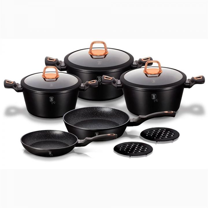 BERLINGER HAUS Menaje | COCINA Black Rose Batería Cocina Inducción 10 Piezas, Antiadherente Mármol Sin Pfoa, Aluminio, Cazuelas Sartenes, , Negro
