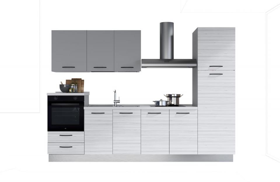 Cocina GILDA 2.0 300×216 cm. Izquierda. Light grey-Light grey/Rovere Cádiz. Se compone de 7 módulos, fregadero, grifo, campana, placa, horno y frigorífico. Sus módulos están fabricados en panel de partículas. Puertas y cajones soft close. Compuesto por base de 90 cm para fregadero, base de horno de 60 cm con 2 cajones, base de 90 cm con 2 puertas, columna de 60 cm para frigorífico, 1 mueble de pared de 60 cm con 1 puerta, 1 mueble de pared escurridor de platos de 90 cm con 2 puertas.Campana extractora KUMTEL DK9 de 90cm. Eficiencia energética D (A+++ a D). 2 Motores. Potencia 140W. Capacidad de ventilación intensiva: 300 m3/h. Control medidante botones. 3 Velocidades. Filtro de aluminio lavable en lavavajillas, Iluminación led. La campana incluye el tubo / chimenea por encima del motor. Acabado inox. Medidas: 89,8 an x 15 al x 48,4 fon cm.Placa Vitrocerámica CANDY CH64XB: 4 Zonas de cocción. Control táctil. 10 Niveles de potencia. Temporizador. Color negro. Medidas: 59 an x 4 al x 52,6 fon cm.Horno convencional CANDY FIDCN200 con ventilador de enfriamiento. Eficiencia energética A (A+++ a D). 70 Litros de capacidad. Controles mecánicos. 4 Funciones. Limpieza aquactiva. Accesorios: 1 rejilla y 1 bandeja. Color negro: 59,5 an x 59,5 al x 56,8 fon cm.Frigorífico CANDY CFBD2450/E2ES de 230 litros de capacidad (36L congelador y 169 litros en la nevera), eficiencia energética E (A a G), iluminación led y nivel sonorod de 39 dB(A). con 2 puertas. Medidas: 54 an x 144,6 al x 54 fon cm. Cocina GILDA 2.0 300×216 cm. Izquierda. Titanio-Frassino Ghiaccio/Light grey. Se compone de 7 módulos, fregadero, grifo, campana, placa, horno y frigorífico. Sus módulos están fabricados en panel de partículas. Puertas y cajones soft close. Compuesto por base de 90 cm para fregadero, base de horno de 60 cm con 2 cajones, base de 90 cm con 2 puertas, columna de 60 cm para frigorífico, 1 mueble de pared de 60 cm con 1 puerta, 1 mueble de pared escurridor de platos de 90 cm con 2 puertas.Campana extractora KUMTEL DK9 de 90cm. Eficiencia energética D (A+++ a D). 2 Motores. Potencia 140W. Capacidad de ventilación intensiva: 300 m3/h. Control medidante botones. 3 Velocidades. Filtro de aluminio lavable en lavavajillas, Iluminación led. La campana incluye el tubo / chimenea por encima del motor. Acabado inox. Medidas: 89,8 an x 15 al x 48,4 fon cm.Placa Vitrocerámica CANDY CH64XB: 4 Zonas de cocción. Control táctil. 10 Niveles de potencia. Temporizador. Color negro. Medidas: 59 an x 4 al x 52,6 fon cm.Horno convencional CANDY FIDCN200 con ventilador de enfriamiento. Eficiencia energética A (A+++ a D). 70 Litros de capacidad. Controles mecánicos. 4 Funciones. Limpieza aquactiva. Accesorios: 1 rejilla y 1 bandeja. Color negro: 59,5 an x 59,5 al x 56,8 fon cm.Frigorífico CANDY CFBD2450/E2ES de 230 litros de capacidad (36L congelador y 169 litros en la nevera), eficiencia energética E (A a G), iluminación led y nivel sonorod de 39 dB(A). con 2 puertas. Medidas: 54 an x 144,6 al x 54 fon cm. Cocina GILDA 2.0 300×216 cm. Izquierda. Titanio-Portland/Rovere Cádiz. Se compone de 7 módulos, fregadero, grifo, campana, placa, horno y frigorífico. Sus módulos están fabricados en panel de partículas. Puertas y cajones soft close. Compuesto por base de 90 cm para fregadero, base de horno de 60 cm con 2 cajones, base de 90 cm con 2 puertas, columna de 60 cm para frigorífico, 1 mueble de pared de 60 cm con 1 puerta, 1 mueble de pared escurridor de platos de 90 cm con 2 puertas.Campana extractora KUMTEL DK9 de 90cm. Eficiencia energética D (A+++ a D). 2 Motores. Potencia 140W. Capacidad de ventilación intensiva: 300 m3/h. Control medidante botones. 3 Velocidades. Filtro de aluminio lavable en lavavajillas, Iluminación led. La campana incluye el tubo / chimenea por encima del motor. Acabado inox. Medidas: 89,8 an x 15 al x 48,4 fon cm.Placa Vitrocerámica CANDY CH64XB: 4 Zonas de cocción. Control táctil. 10 Niveles de potencia. Temporizador. Color negro. Medidas: 59 an x 4 al x 52,6 fon cm.Horno convencional CANDY FIDCN200 con ventilador de enfriamiento. Eficiencia energética A (A+++ a D). 70 Litros de capacidad. Controles mecánicos. 4 Funciones. Limpieza aquactiva. Accesorios: 1 rejilla y 1 bandeja. Color negro: 59,5 an x 59,5 al x 56,8 fon cm.Frigorífico CANDY CFBD2450/E2ES de 230 litros de capacidad (36L congelador y 169 litros en la nevera), eficiencia energética E (A a G), iluminación led y nivel sonorod de 39 dB(A). con 2 puertas. Medidas: 54 an x 144,6 al x 54 fon cm. Cocina GILDA 2.0 300×216 cm. Izquierda. Titanio-Rovere Cádiz/Portland. Se compone de 7 módulos, fregadero, grifo, campana, placa, horno y frigorífico. Sus módulos están fabricados en panel de partículas. Puertas y cajones soft close. Compuesto por base de 90 cm para fregadero, base de horno de 60 cm con 2 cajones, base de 90 cm con 2 puertas, columna de 60 cm para frigorífico, 1 mueble de pared de 60 cm con 1 puerta, 1 mueble de pared escurridor de platos de 90 cm con 2 puertas.Campana extractora KUMTEL DK9 de 90cm. Eficiencia energética D (A+++ a D). 2 Motores. Potencia 140W. Capacidad de ventilación intensiva: 300 m3/h. Control medidante botones. 3 Velocidades. Filtro de aluminio lavable en lavavajillas, Iluminación led. La campana incluye el tubo / chimenea por encima del motor. Acabado inox. Medidas: 89,8 an x 15 al x 48,4 fon cm.Placa Vitrocerámica CANDY CH64XB: 4 Zonas de cocción. Control táctil. 10 Niveles de potencia. Temporizador. Color negro. Medidas: 59 an x 4 al x 52,6 fon cm.Horno convencional CANDY FIDCN200 con ventilador de enfriamiento. Eficiencia energética A (A+++ a D). 70 Litros de capacidad. Controles mecánicos. 4 Funciones. Limpieza aquactiva. Accesorios: 1 rejilla y 1 bandeja. Color negro: 59,5 an x 59,5 al x 56,8 fon cm.Frigorífico CANDY CFBD2450/E2ES de 230 litros de capacidad (36L congelador y 169 litros en la nevera), eficiencia energética E (A a G), iluminación led y ni