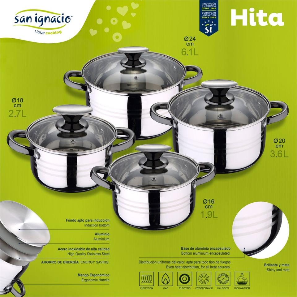 Bateria De Cocina 8 Piezas Apta Para Induccion San Ignacio Hita En Acero Inoxidable Con Set 4 Cuchillos Daimiel…