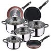 Excepcional batería de 8 piezas de San Ignacio.Se compone de 4 cacerolas con sus respectivas tapas de vidrio.Fabricadas en acero inoxidable 201, con un estudiado grosor de 0,35 mm. para una efectiva y rápida distribución del calor.Las dimensiones de las ollas son ideales: Ø16×9,5; Ø18×10,5; Ø20×11,5 y Ø24×13,5 cms.Y sus capacidades, 1,9 L; 2,7 L; 3,5 L; y 5,1 Litros, ideales.Dispone de unos espectaculares asas y pomos en contraste oscurecido, para un cuerpo cromado, con el detalle de tres elegantes líneas satinadas. Las tapas disponen de válvula para escape del vapor, y al ser de cristal, puedes vigilar la cocción sin necesidad de destapar.Escala medidora en el interior.Por supuesto, aptas para todo tipo de fuegos, incluído el de inducción.Y set de 3 sartenes en dimensiones ideales: 16, 20 y 24 cms.Mango termoplástico siempre frio, ergonómico, y con alta capacidad de agarre.Fondo difusor encapsulado apto para todo tipo de fuegos incluido inducción.Revestimiento antiadherente duradero y que evita el desgaste de la sartén, proporcionando resiliencia frente a rayaduras.
