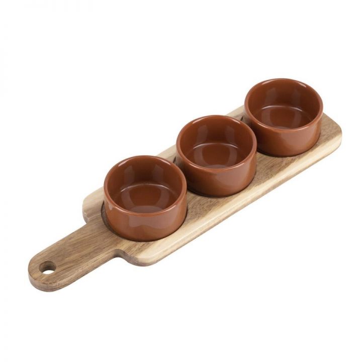 Si te gusta cuidar cada detalle de tu hogar y estar a la última en productos que te harán la vida más facil, compra Juego de Cuencos San Ignacio Agros 4 Piezas al mejor precio. Características: ResistenteDiseño original y portátilMaterial: PorcelanaAcaciaNúmero de piezas: 4 PiezasTipo: Set de CuencosMedidas aprox.: 34 x 9,8 cmIncluye: Tabla de cortar