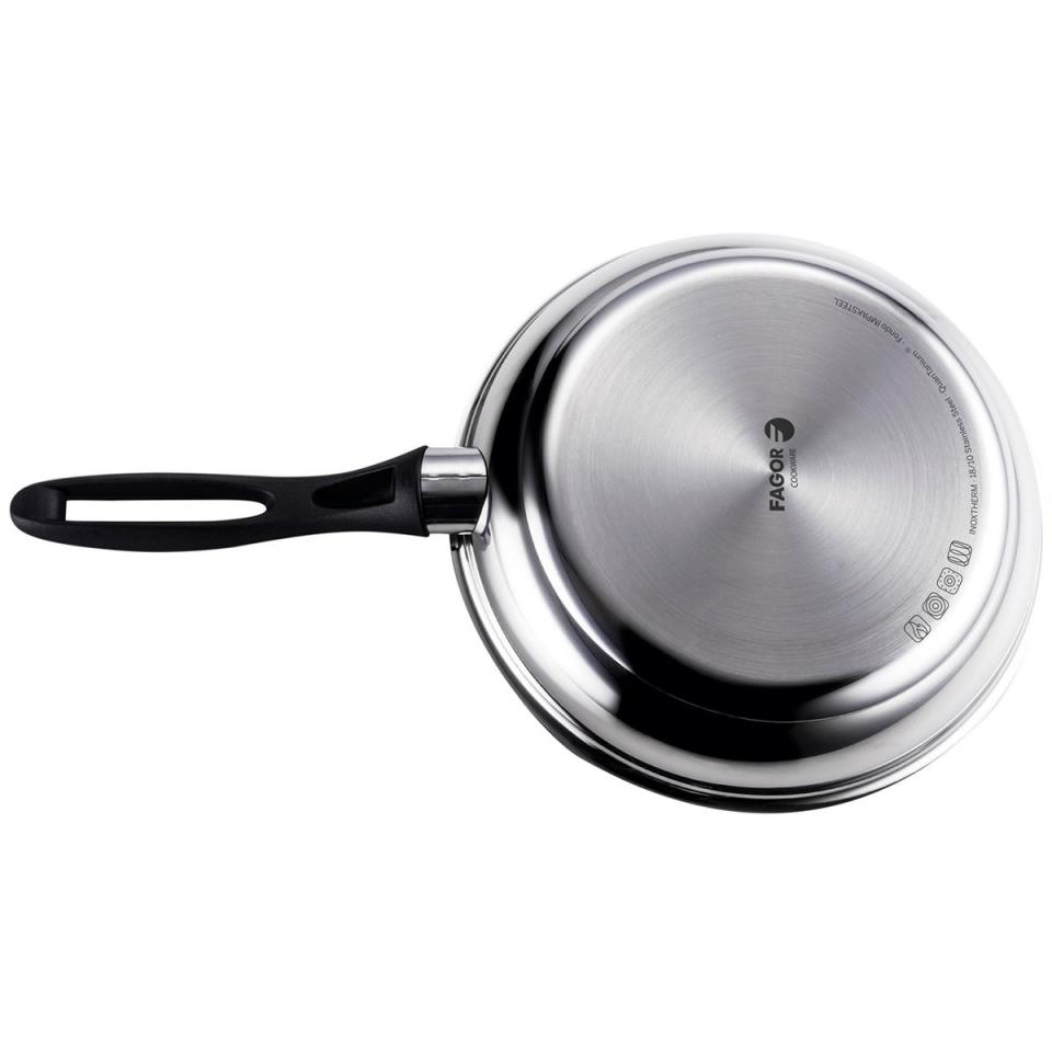 Las sartenes Fagor Inoxtherm no solo te ayudan a cocinar tus alimentos, también reducen el tiempo de cocinado conservando la calidad de los alimentos y ahorrando energía.CARACTERÍSTICAS:Acero Inoxidable: Sartenes, fabricadas en acero inoxidable 18/10 de alta calidad que garantiza, resistencia al uso y distribución del calor eficiente. Acabado exterior en acero pulido espejo.Antiadherente Triple capa: El antiadherente de triple capa QUANTANIUM FANCY SILVER DIAMOND con partículas de Titanio libre de PFOA, plomo y cadmio, es más duradero, impide que los alimentos se peguen a la pieza y facilita la limpieza.Inducción: El fondo difusor IMPAKSTEEL fabricado por impacto y con disco de aluminio de 5mm mejora la conductibilidad térmica proporcionando una distribución del calor rápida y homogénea, lo que implica un menor gasto de energía para cocinar los alimentos.Apta todo tipo de cocinas: Permite cocinar con muy poca cantidad de aceite y son aptas para todo tipo de cocinas: Vitrocerámica, Gas, Eléctrica, Inducción. Se limpian fácilmente y son aptas para limpieza en lavavajillas.Mango de Baquelita: Su mango de baquelita es ergonómico de tacto suave y frío por lo que ofrecen un agarre cómodo y mantienen tus manos a salvo de las quemaduras.3 Piezas: El lote incluye 3 sartenes: Ø 18 / Ø 20 cm / Ø 24 cm.ESPECIFICACIONES:Acero Inoxidable 18/10.Antiadherente de triple capa Quantinium Fancy Silver Diamond con partículas de Titanio.Fondo difusor IMPAKSTEEL con disco de aluminio de 5mm.Acabado exterior pulido espejo.Mango ergonómico de baquelita termoaislante.Libre de cadmio y PFOA. Sin metales pesados.Fácil limpieza.Fabricado en España.