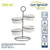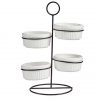 Descubre el nuevo set de 4 bols de la colaboración entre San Ignacio y VESSIA, diseñado para facilitar tu día a día en la cocina. Con capacidad de 200 ml, estos bols redondos son ideales para servir tus comidas con estilo.Diseño elegante: Fabricados en porcelana de alta calidad, estos bols tienen un acabado en color blanco que se adapta a cualquier estilo de cocina.Práctico y funcional: Con dimensiones de 9 x 9 x 4,2 cm, son perfectos para presentar aperitivos, postres o salsas de forma sofisticada.Set completo: Este set incluye un estante de metal de 19×13 cm, que te permite mantener los bols organizados y a la mano en tu cocina o comedor.Versatilidad y durabilidad: Los bols son aptos para lavavajillas, lo que facilita su limpieza y mantenimiento para un uso prolongado.Marca líder: San Ignacio es reconocida por su calidad en menaje de cocina, asegurando que este set de bols cumplirá con tus expectativas de diseño y funcionalidad. ¡Potencia tu presentación culinaria con este exclusivo set de bols!