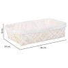 Esta bandeja de bambú blanca presenta un forro blanco que aporta una sensación de frescura. Con dimensiones de 36 centímetros de ancho, 24 centímetros de largo y 8 centímetros de altura, es ideal para servir pequeñas delicias o como pieza decorativa.