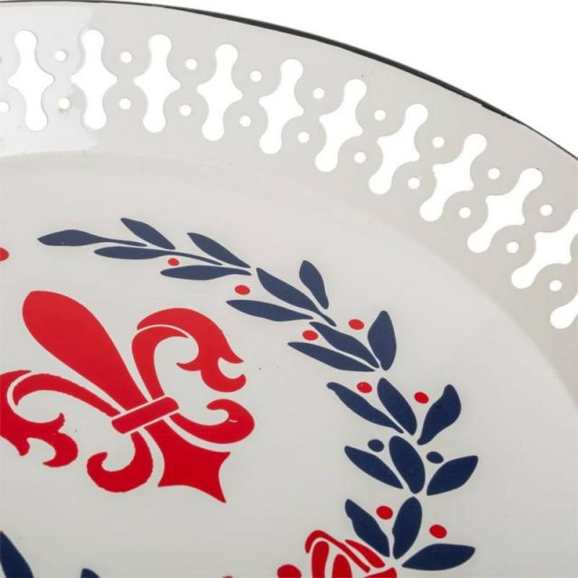 Esta bandeja de metal con su diseño elegante y su tamaño la hacen adecuada para servir alimentos, organizar objetos o como elemento decorativo. Ideal para añadir un toque de estilo y funcionalidad a tu hogar.