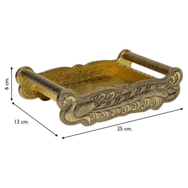 Bandeja De Metal Repujado Dorada 25X13X6…
