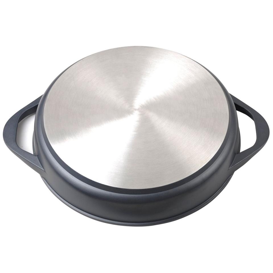 Cazuela Alta inducción con tapa de cristal 24cm,3 Capas Antiadherente sin PFOA,aluminio fundido, 5mm espesor, 11,7cm alto, asas de silicona, Apta todas las cocinas, vitroceramica, gas, lavavajillas